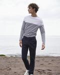 Flat front chino trouser, Stretch fabric for ease of movement, Slanted front pockets, Two back welt pockets, Belt loops, Plain hem, Stretch twill garment washed, Wash at 40 degrees