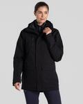 EN343-3.1 AquaDry membrane part recycled polyester stretch with H2OShield DWR, Polyester stretch mesh and recycled polyester taffeta lining outer, Recycled zip tapes to all but outer jacket chest pocket, Waterproof, breathable, wind resistant and insulating with reflective detail, Adjustable hem, inner drawcord hem adjusters and fused self fabric cuff adjusters, Stud fastening stormflap, inner zip guard and inner zip access for logos, Grown on hood with toggle adjusters to front and adjuster to back, Six pockets, two bellowed stud fastening lower with fused flaps and zipped side handwarmers, One waterproof zipped chest pocket and one zipped inner map, Inner softshell with two zipped pockets and adjustable hem, Approximately 575g of recycled material went into making this product