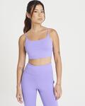 Slim fit, 4-way stretch fabric, Wicking, quick dry fabric, Removable padded bust cups, Adjustable straps, Internal support, Made with recycled polyester, Tearaway label