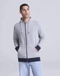 70% recycled pre consumer cotton, Contrast cuff and hem, Peached fabric surface, Brushed fabric inner, Metal zip, Size label only, Contrast round drawcords, Ribbed cuffs and hem, Taped neck, Set in sleeves, Slim ft