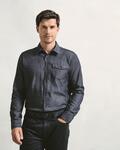 Contrast stitch details, Left chest button down pocket, Buttoned cuff and buttoned sleeve guard for roll back option on lower arm, Curved hem, Worldwide Responsible Accredited Production (WRAP) certified production