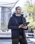 Warm backed woven softshell fabric with water repellent finish, Two zipped lower pockets and waterproof chest pocket, Detachable hood with adjuster, Adjustable cuffs, Adjustable shockcord hem
